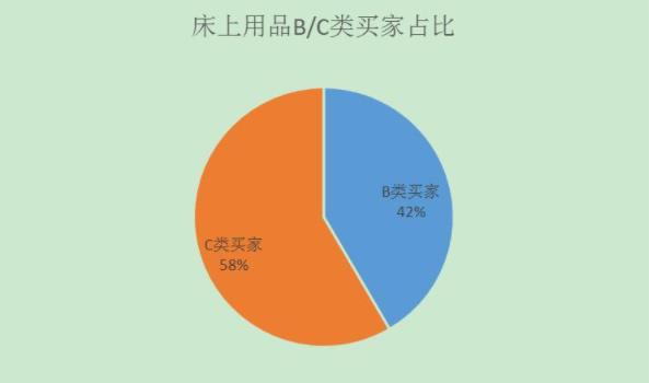 床上用品行业销售额占家纺总量的25%,平均客单价为88美金,买家类型偏零售,B类用户占42%,C类零售占比58%。